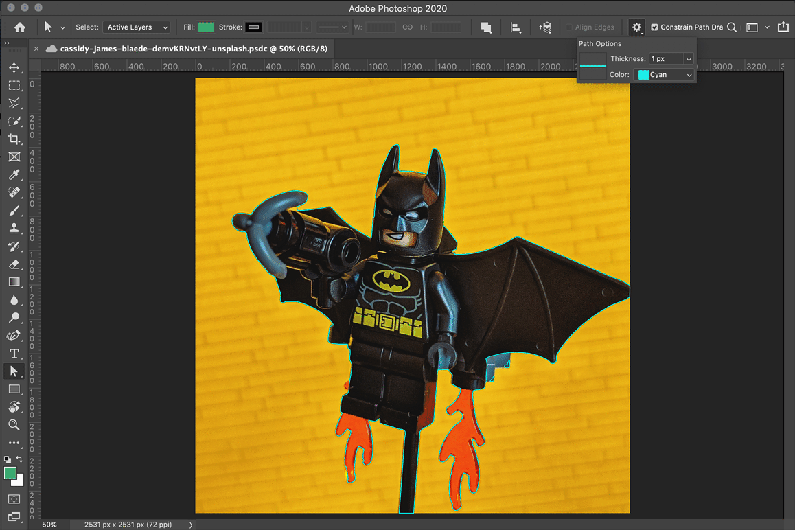 Use Path Options from the options bar to change the thickness and color of paths to make them stand out from the artwork.